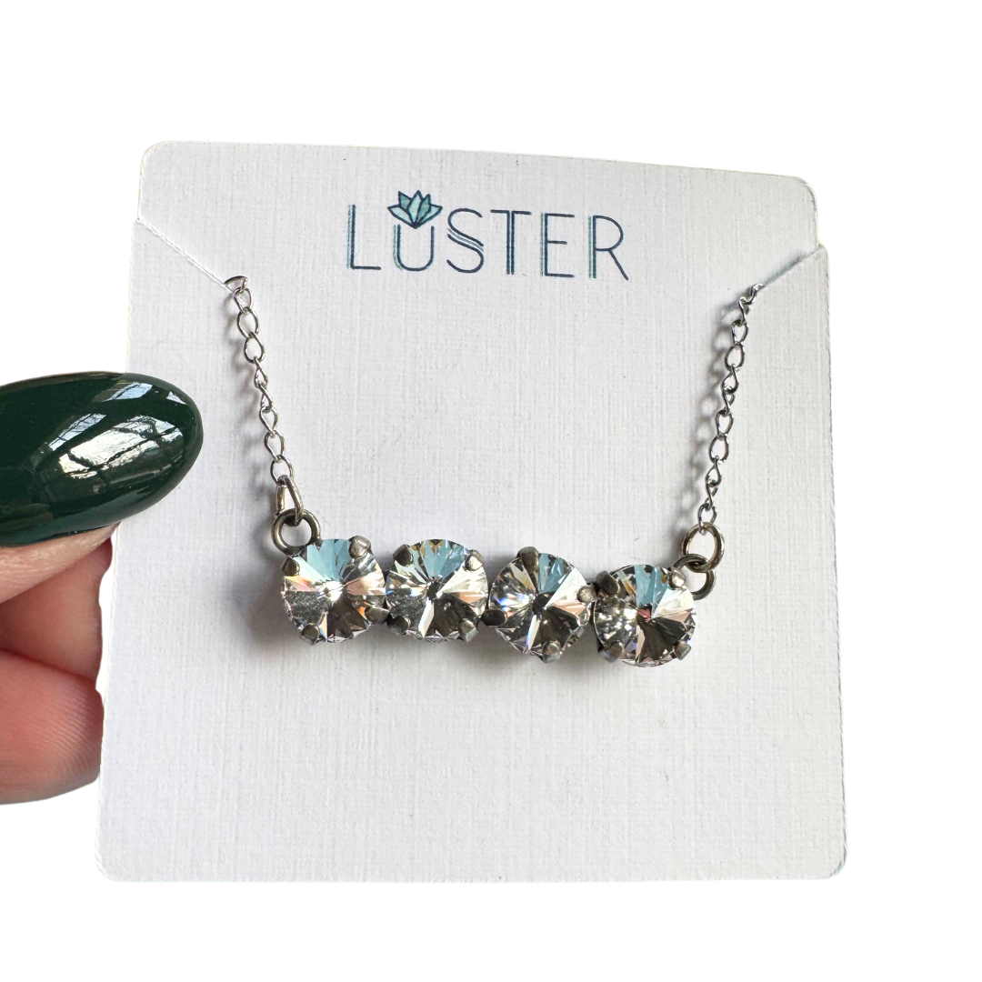 Clear Swarovski crystal quartet bar on nickel-free silver plated brass setting.