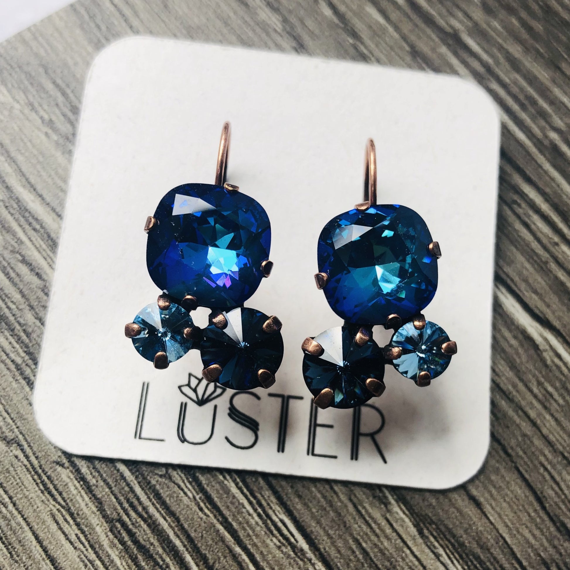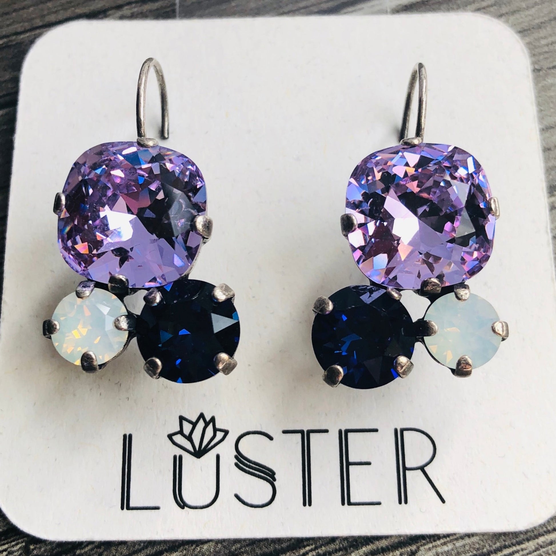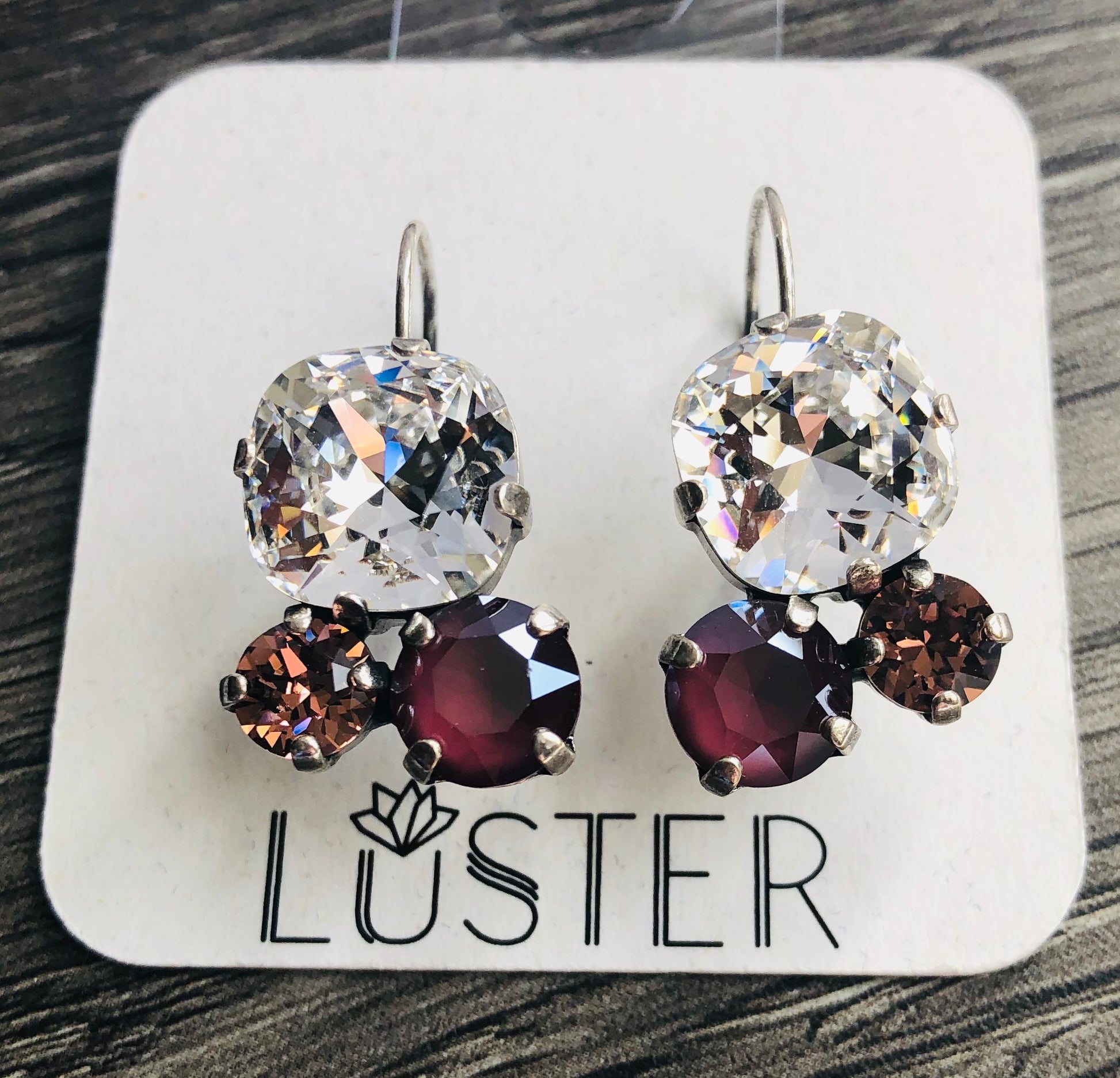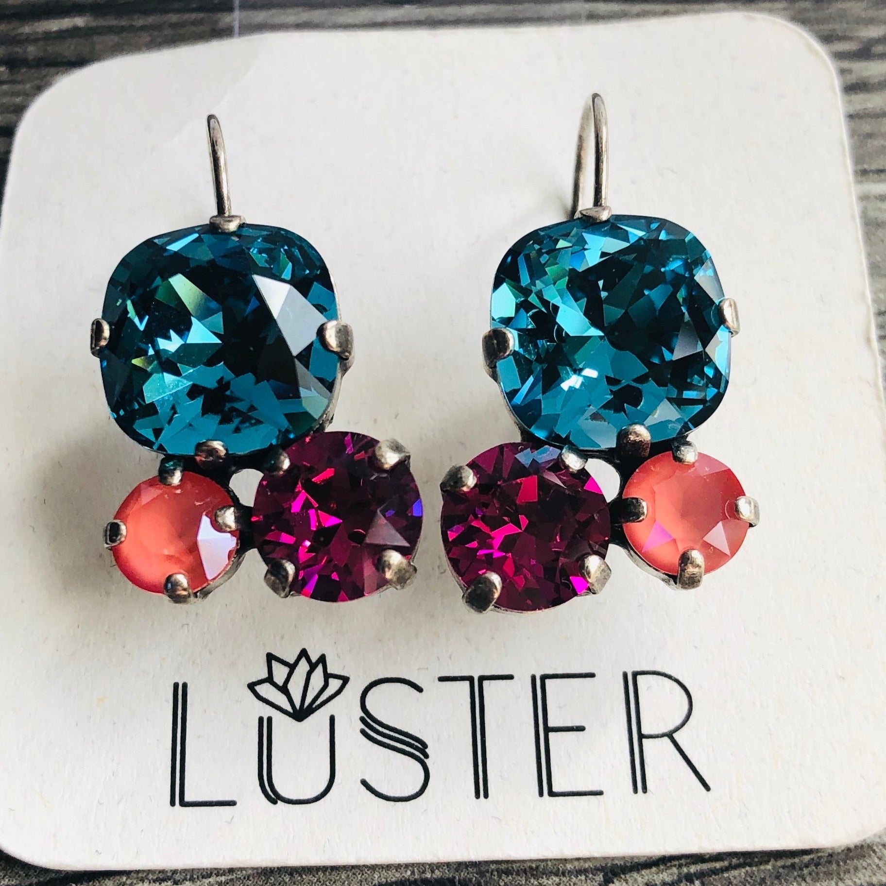 Best-selling cushion cut cluster earrings in a wide variety of fun colors.