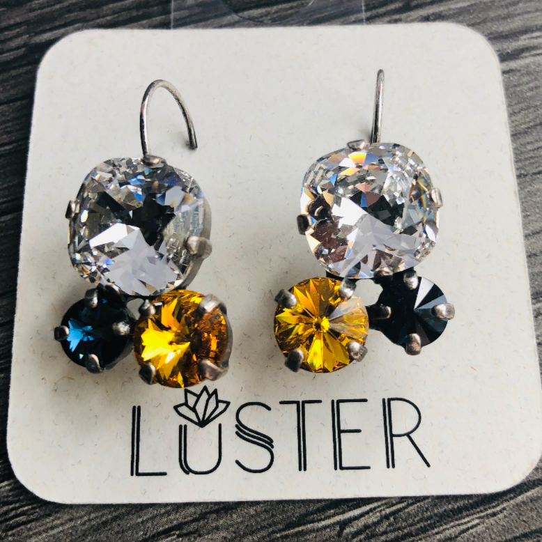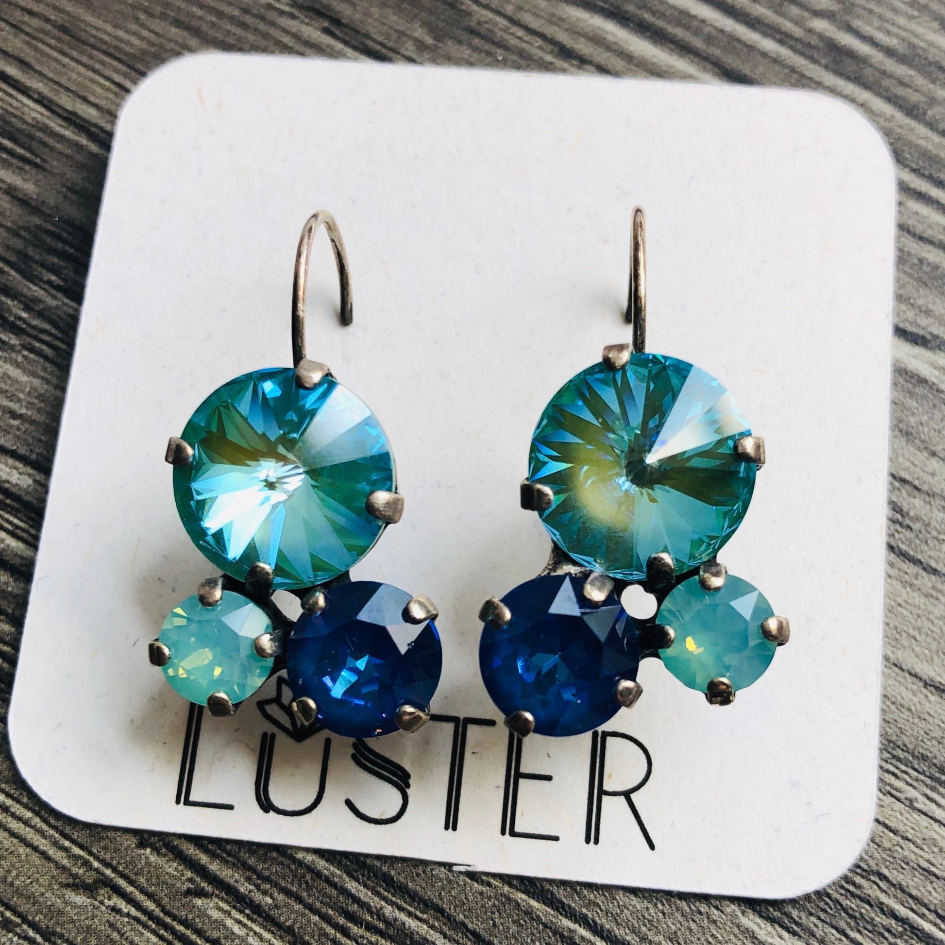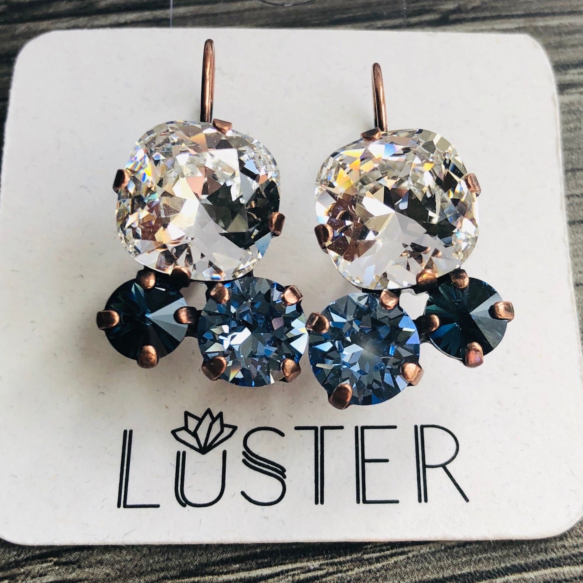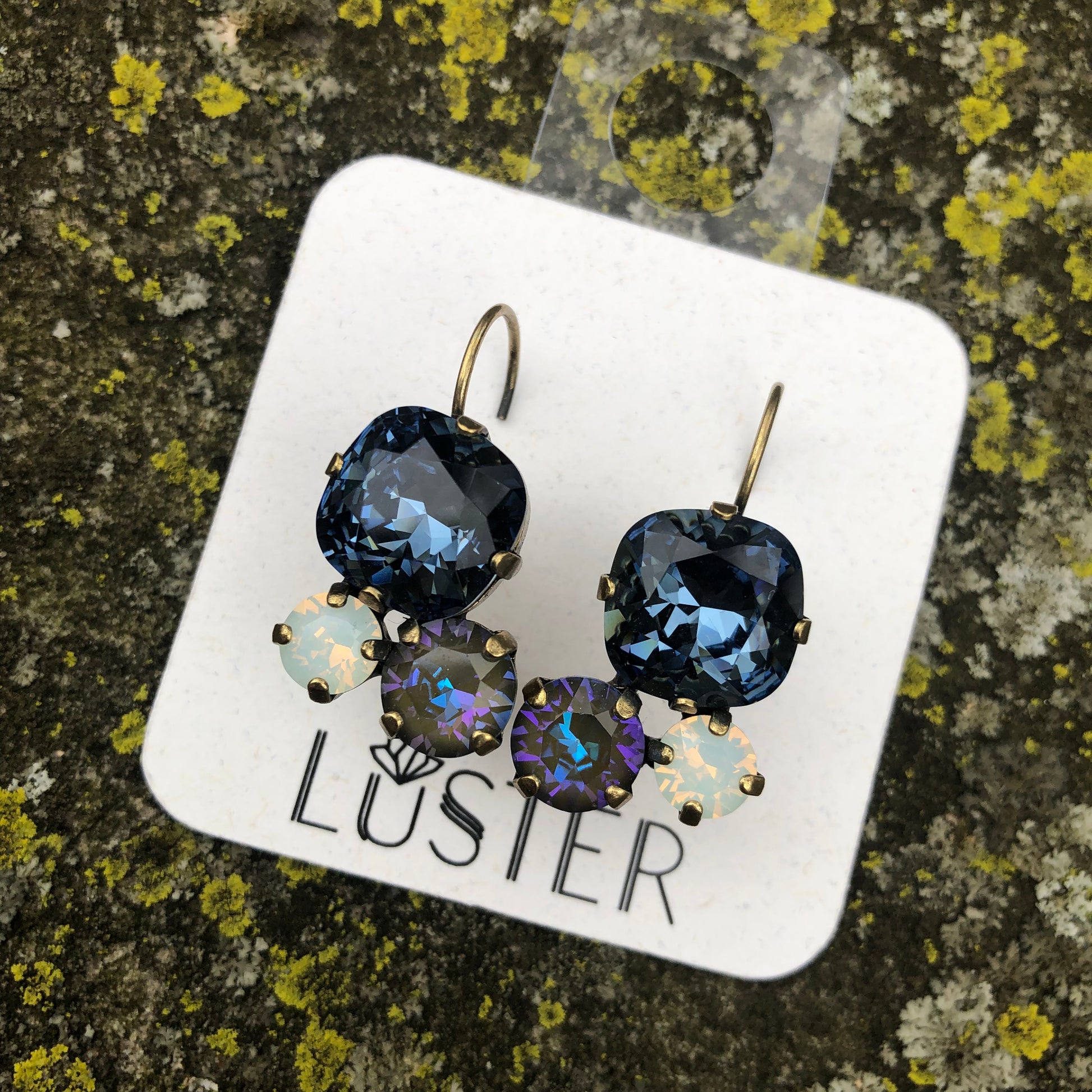 Best-selling cushion cut cluster earrings in a wide variety of fun colors.