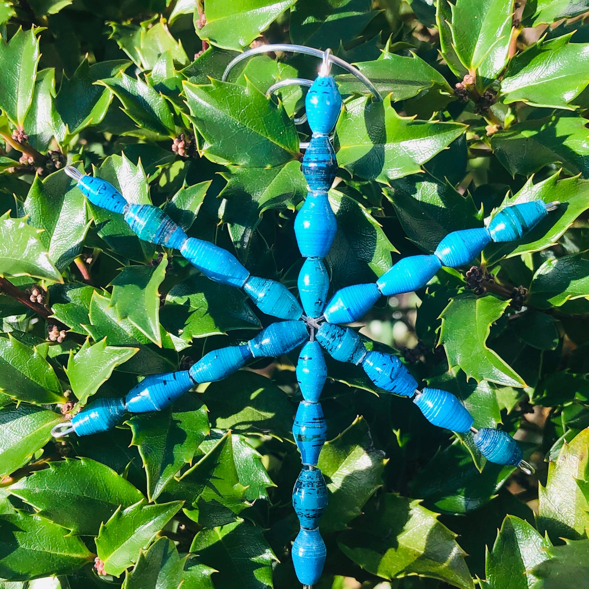 Lovely lightweight upcycled paper ornament.
